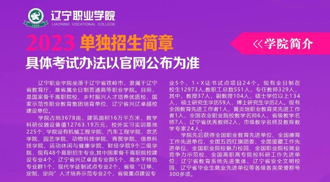 辽宁职业学院2023年单独招生简章